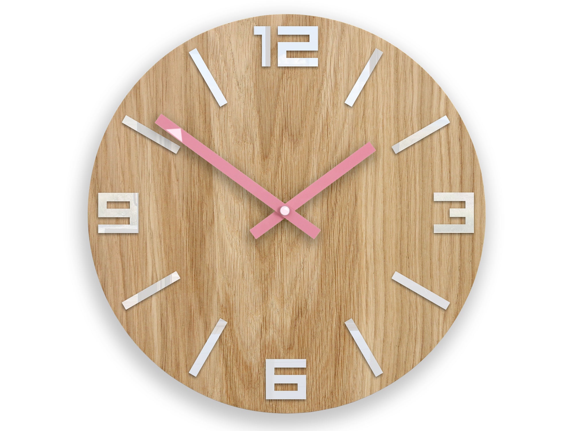 Ξύλινο ρολόι τοίχου ARABIC Λευκό-Ροζ