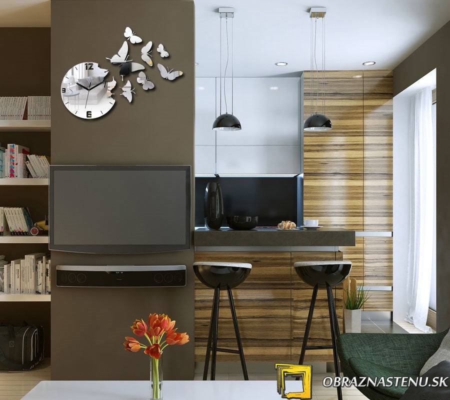 Μοντέρνο ρολόι τοίχου MIRROR BUTTERFLIES