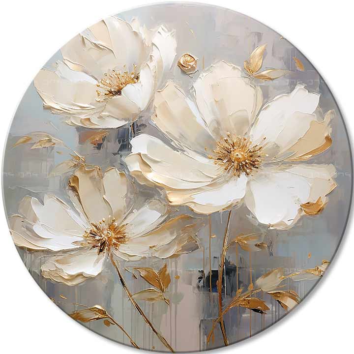 Στρογγυλά έργα ζωγραφικής με ακρυλικό Λουλούδια με φορέματα μπάλας | διαφορετικές διαστάσεις