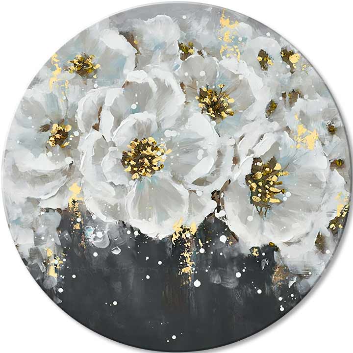 Ξεχωρίζοντας από τις παραδοσιακές ορθογώνιες μορφές, οι στρογγυλοί πίνακες προσθέτουν ένα στοιχείο ρευστότητας και οπτικού απείρου σε κάθε εσωτερικό χώρο. Το μοναδικό τους σχήμα διευρύνει τα όρια της παραδοσιακής αντίληψης της τέχνης, ανοίγοντας νέες δυνατότητες στη σύνθεση και το σχεδιασμό και προσδίδοντας δυναμισμό και φρεσκάδα στα σπίτια και τα γραφεία σας.