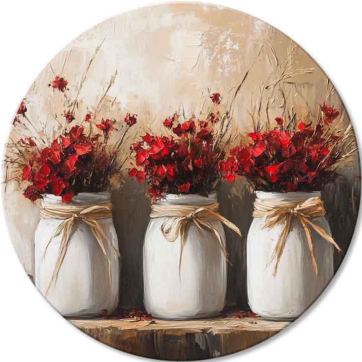 Ξεχωρίζοντας από τις παραδοσιακές ορθογώνιες μορφές, οι στρογγυλοί πίνακες προσθέτουν ένα στοιχείο ρευστότητας και οπτικού απείρου σε κάθε εσωτερικό χώρο. Το μοναδικό τους σχήμα διευρύνει τα όρια της παραδοσιακής αντίληψης της τέχνης, ανοίγοντας νέες δυνατότητες στη σύνθεση και το σχεδιασμό και προσδίδοντας δυναμισμό και φρεσκάδα στα σπίτια και τα γραφεία σας.