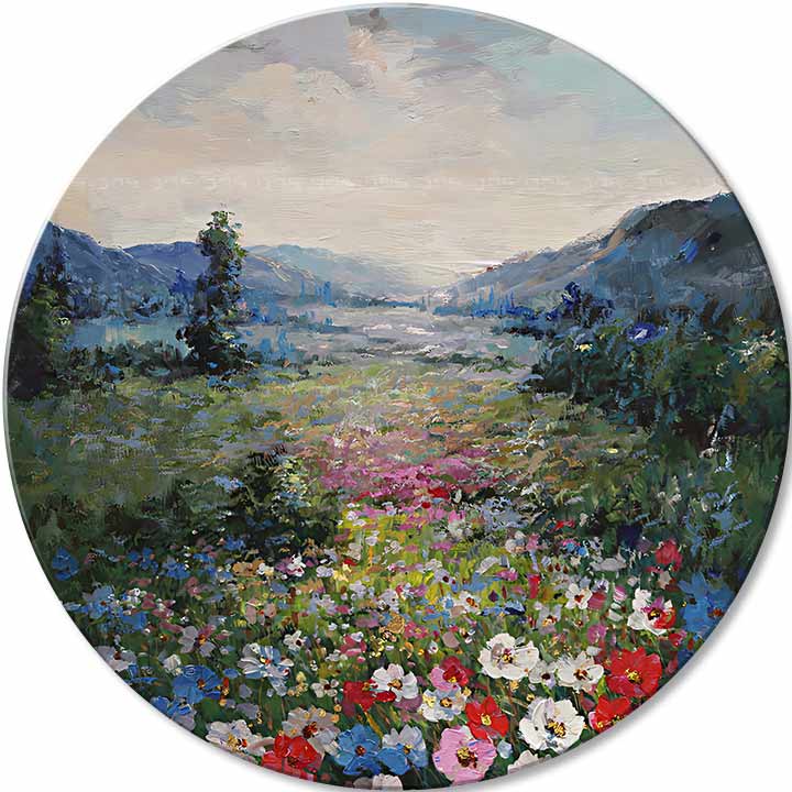 Ξεχωρίζοντας από τις παραδοσιακές ορθογώνιες μορφές, οι στρογγυλοί πίνακες προσθέτουν ένα στοιχείο ρευστότητας και οπτικού απείρου σε κάθε εσωτερικό χώρο. Το μοναδικό τους σχήμα διευρύνει τα όρια της παραδοσιακής αντίληψης της τέχνης, ανοίγοντας νέες δυνατότητες στη σύνθεση και το σχεδιασμό και προσδίδοντας δυναμισμό και φρεσκάδα στα σπίτια και τα γραφεία σας.