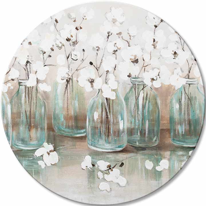 Ξεχωρίζοντας από τις παραδοσιακές ορθογώνιες μορφές, οι στρογγυλοί πίνακες προσθέτουν ένα στοιχείο ρευστότητας και οπτικού απείρου σε κάθε εσωτερικό χώρο. Το μοναδικό τους σχήμα διευρύνει τα όρια της παραδοσιακής αντίληψης της τέχνης, ανοίγοντας νέες δυνατότητες στη σύνθεση και το σχεδιασμό και προσδίδοντας δυναμισμό και φρεσκάδα στα σπίτια και τα γραφεία σας.
