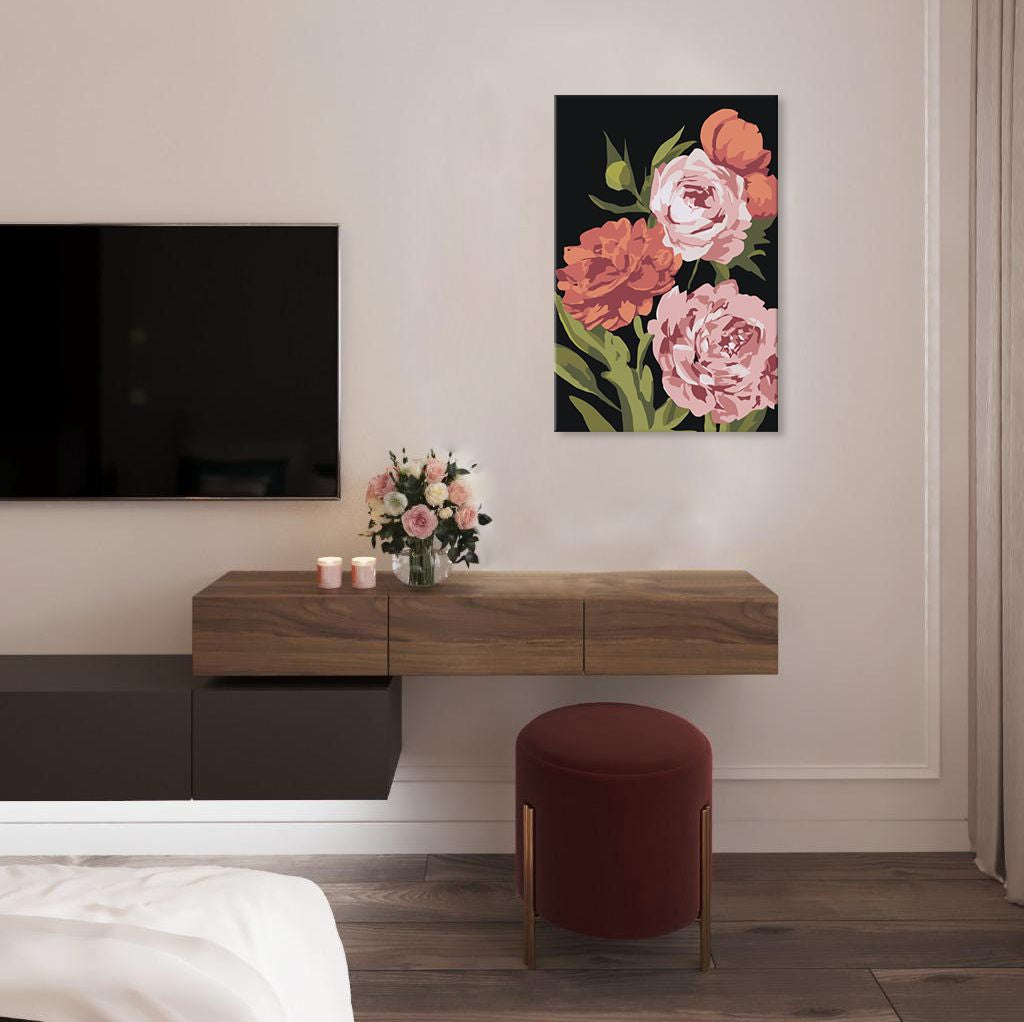 Το μαύρο έδαφος θα δώσει την εντύπωση μεγαλύτερου βάθους στο έργο σας. Ανοίγει νέες δυνατότητες για να παίξετε με τις αποχρώσεις του χρώματος. Φαίνεται κομψό και μινιμαλιστικό στον τοίχο. Η εικόνα που προκύπτει δίνει στον εσωτερικό χώρο μια καλλιτεχνική εντύπωση.