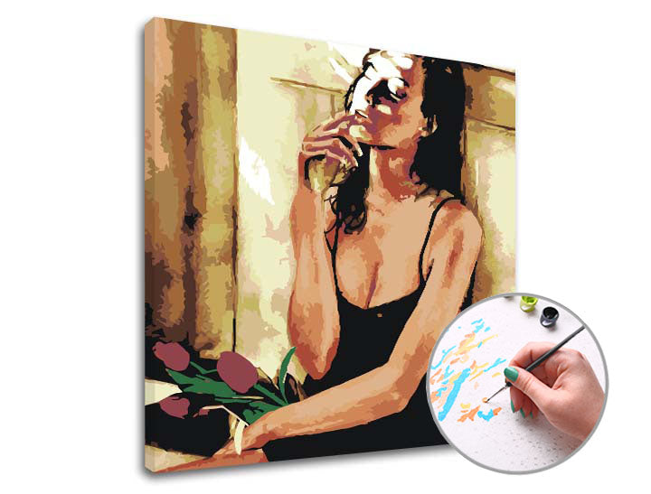 Ζωγραφική με αριθμούς ΓΥΝΑΙΚΑ ΜΕ ΛΟΥΛΟΥΔΙΑ | χαμηλή δυσκολία
