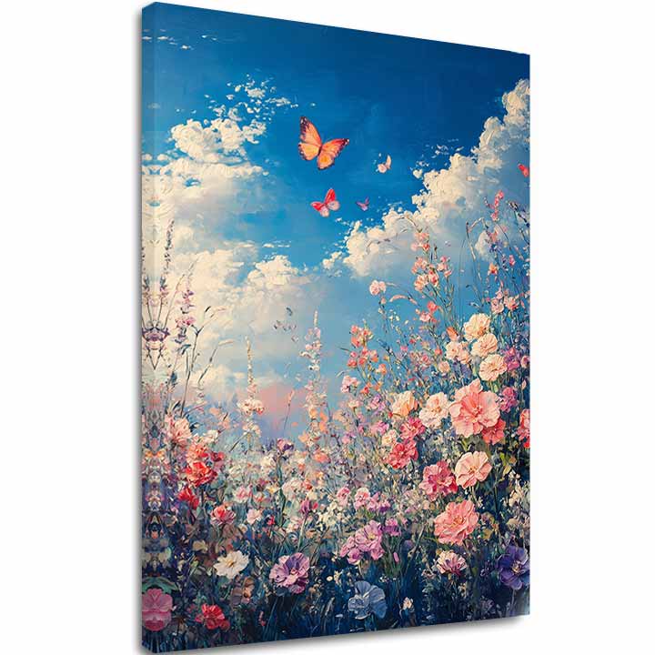 Ζωγραφική Πεταλούδες στο ανθισμένο λιβάδι - Πολύχρωμη κομψότητα